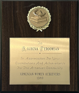 Armenian Women Achievers, 1989. In appreciation for your contributions and achievements for the Armenian community. |