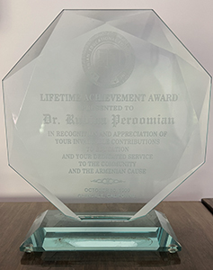 | ANCA-WR (Armenian National Committee of America – Western Region) Lifetime Achievement Award, received during the organization’s annual banquet, October 28, 2012, Beverly Hills, CA. | ![]() |