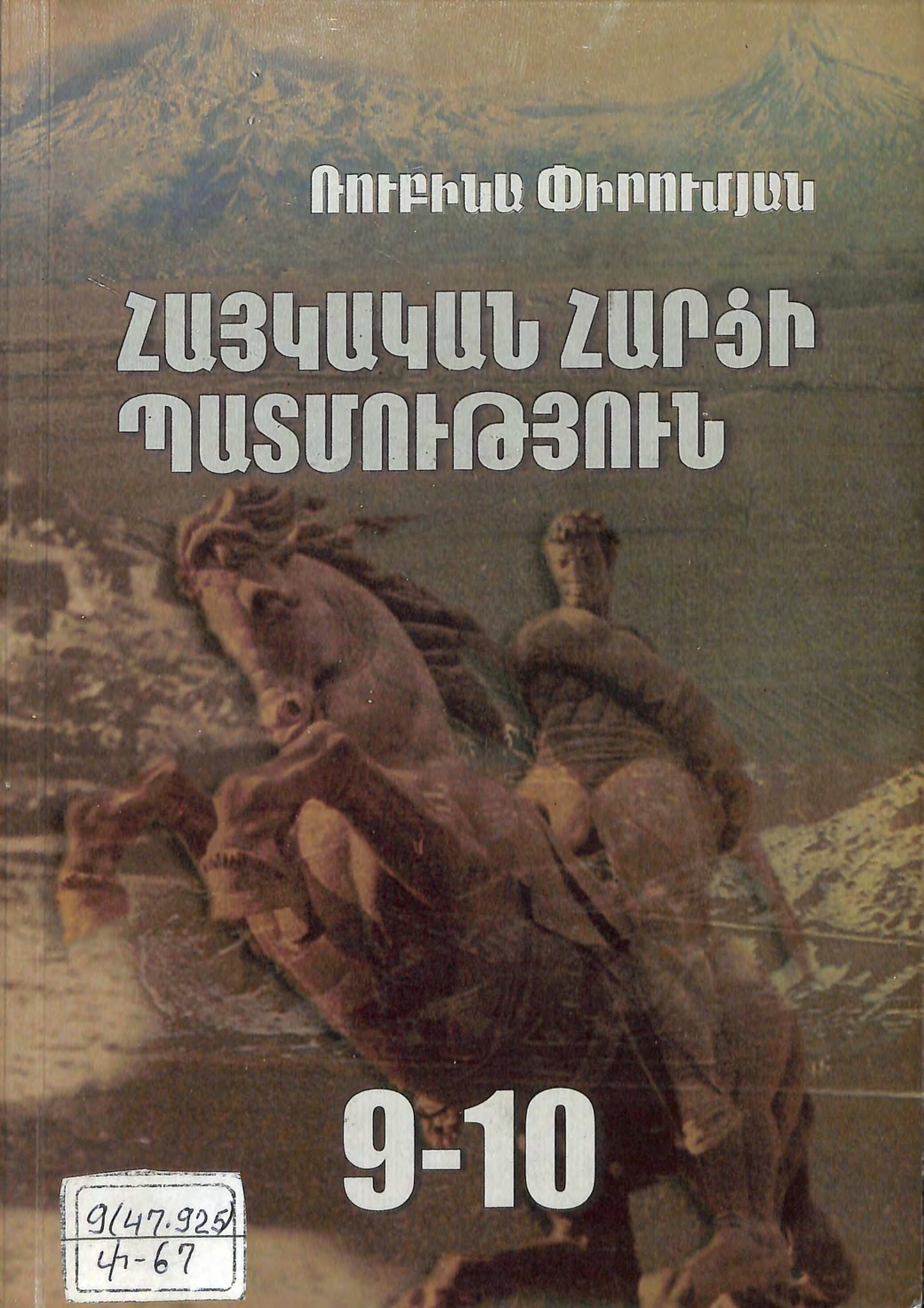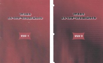 «Հայկական հարցի պատմություն» ( History of the Armenian Question), a textbook for the 9th grade, commissioned and published by the Ministry of Education, Armenia, introduced in high schools in Armenia as a pilot program from September 2000. The 2000 version completed its trial period and was republished in December 2002 (for grades 9 and 10), to be incorporated into the history curriculum by the Ministry of Education of Armenia. The textbook is accompanied by a workbook and a teacher’s guide, pp. 264 Click here for the PDF of this volume. |